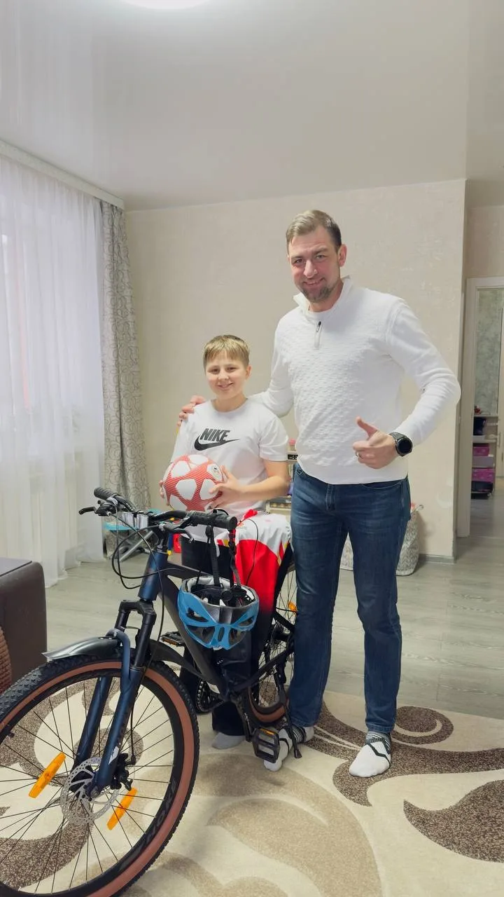 В рамках Всероссийской акции «Ёлка желаний» он получил в подарок на Новый год заветный велосипед от директора ГУ ТО «Центр спортивной подготовки» Дмитрия Фисюка.